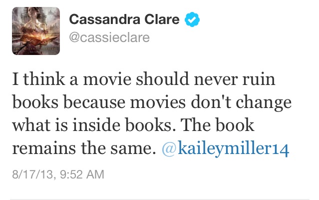 As always, Twitter is a great inspiration for these entries. I saw this Tweet from Cassandra Clare, whose book, City of Bones, comes out in movie form this week.