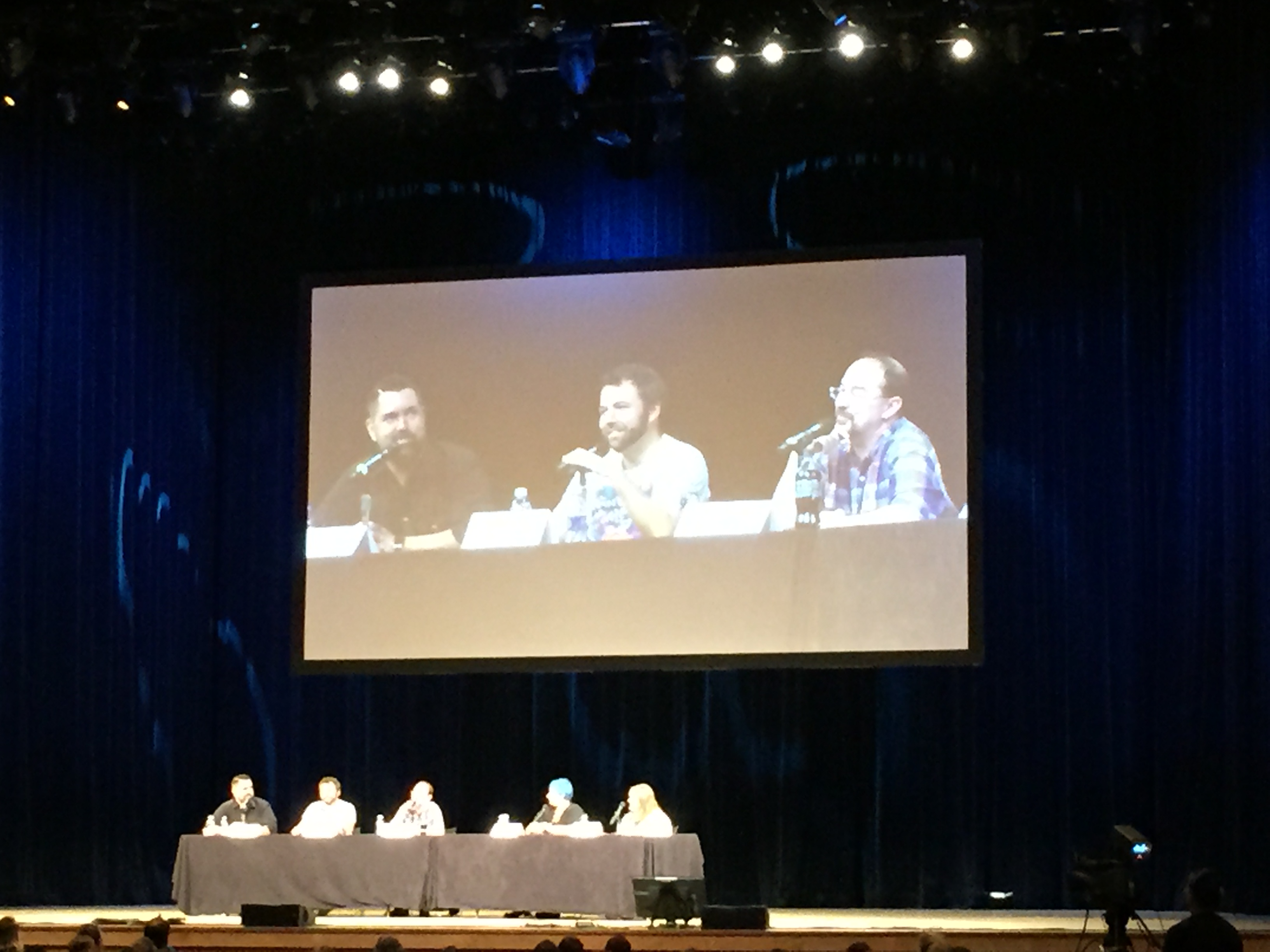Social media panel. Maureen Johnson, Hank Green, Maggie Stiefvater, John Scalzi, John Moe.